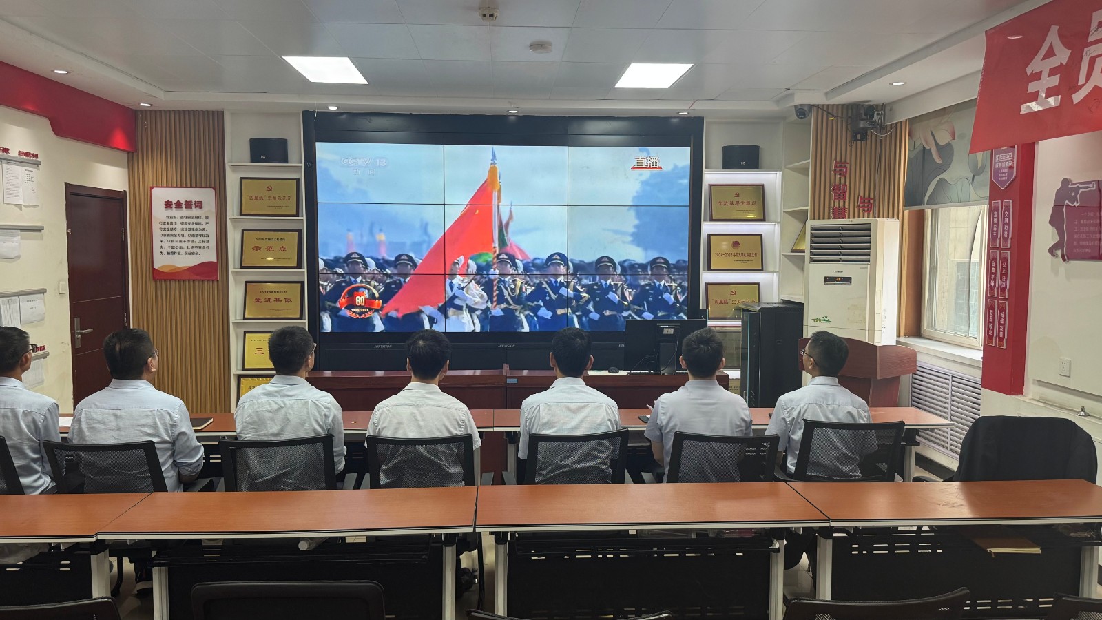 歷史燭照未來,精神永續(xù)傳承。為深切緬懷在抗日戰(zhàn)爭中英勇獻身的革命先烈,大力弘揚偉大的抗戰(zhàn)精神,引導全體黨員、職工銘記光輝歷史、堅定理想信念、強化責任擔當,9月3日,機運工區(qū)黨支部組織開展了“銘記歷史偉業(yè),傳承紅色基因”主題黨日活動,組織全體黨員集中觀看紀念中國人民抗日戰(zhàn)爭暨世界反法西斯戰(zhàn)爭勝利80周年閱兵儀式現(xiàn)場直播。上午九時整,機運工區(qū)全體黨懷著無比崇敬與激動的心情,目光齊聚屏幕。伴隨著激昂雄壯的國歌奏響,鮮艷的五星紅旗在天安門廣場冉冉升起,大家心潮澎湃,肅然起敬。隨后,規(guī)模宏大、氣勢磅礴的閱兵式正式開始。屏幕上,一個個整齊劃一、威武雄壯的徒步方隊,邁著鏗鏘有力、撼人心魄的步伐走過檢閱臺,堅毅的眼神、挺拔的身姿,充分展現(xiàn)了新時代軍人聽黨指揮的忠誠品格和能打勝仗的過硬本領;一列列代表著國家科技實力與國防現(xiàn)代化建設最新成果的裝備方隊,鐵流滾滾,氣勢如虹,尖端武器依次亮相,彰顯了捍衛(wèi)國家主權、安全、發(fā)展利益的堅定決心與強大能力;雄鷹呼嘯,劃破長空,戰(zhàn)機編隊以精準的隊形和磅礴的氣勢接受檢閱,描繪出壯美的藍天畫卷,宣示著捍衛(wèi)國家領空安全的鋼鐵意志。整個閱兵過程,秩序井然、威武雄壯、氣勢恢宏,生動詮釋了人民軍隊“聽黨指揮、能打勝仗、作風優(yōu)良”的強軍目標,全方位展示了在黨的堅強領導下,國家日益強大的綜合國力和維護世界和平的堅定信念。屏幕前,黨員們?nèi)褙炞ⅲ瑹o不被這震撼人心的場面所感染,民族自豪感與榮譽感油然而生,現(xiàn)場不時響起由衷的贊嘆和熱烈的掌聲。通過本次“銘記歷史偉業(yè),傳承紅色基因”主題黨日活動,機運工區(qū)黨支部全體黨員經(jīng)歷了一次深刻的精神淬煉與思想升華。大家的歷史使命感、民族自豪感、崗位責任感得到顯著增強,紛紛表示以更加飽滿昂揚的精神狀態(tài)、更加求真務實的工作作風、更加開拓創(chuàng)新的進取意識,恪盡職守,銳意進取,全力以赴保障原煤運輸安全高效,為工區(qū)及公司的持續(xù)高質量發(fā)展貢獻全部力量!